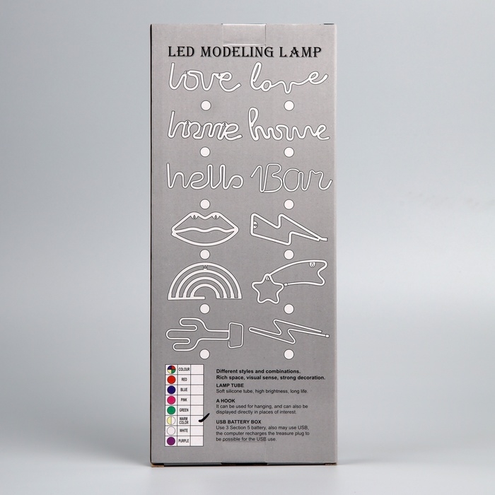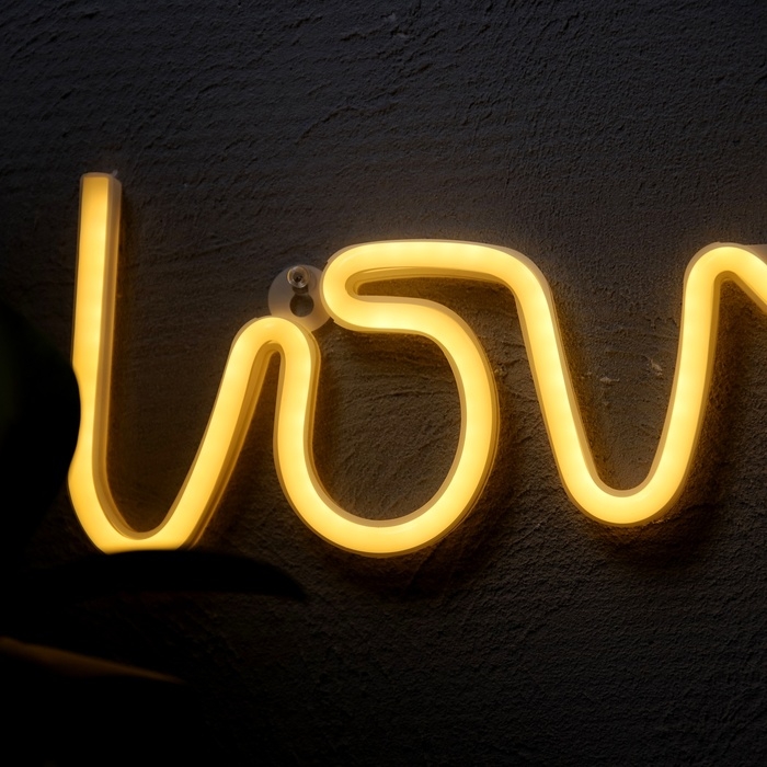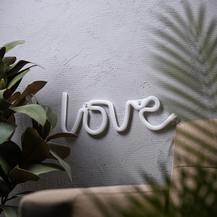Неоновая вывеска «Любовь» 35 x 13 см, батарейки AAx3 (нет в комплекте) + USB, свечение тёплое белое
