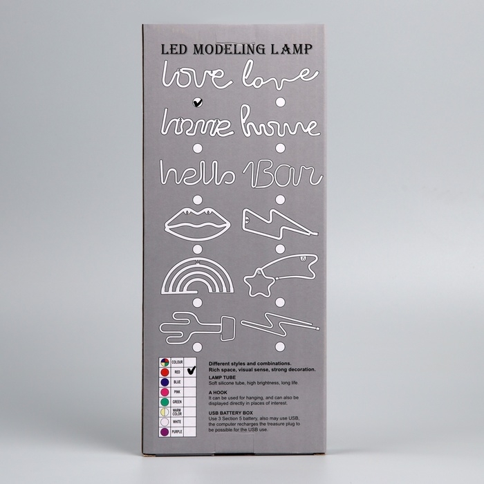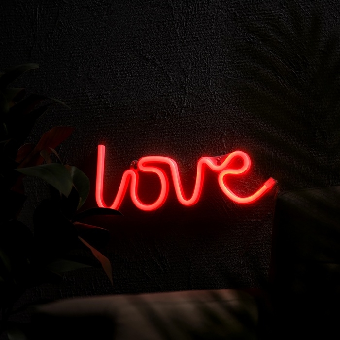 Неоновая вывеска «Любовь» 35 x 13 см, батарейки AAx3 (нет в комплекте) + USB, свечение красное