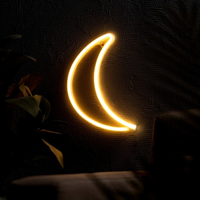 Неоновая вывеска «Полумесяц» 30 x 18.5 см, батарейки AAx3 (нет в комплекте) + USB, свечение тёплое белое