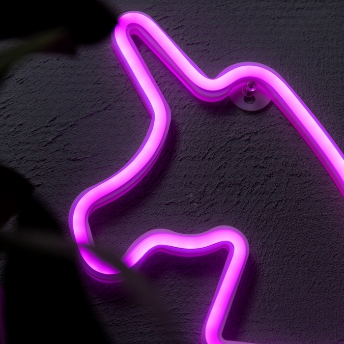 Неоновая вывеска «Единорог» 22 x 19 см, батарейки AAx3 (нет в комплекте) + USB, свечение розовое