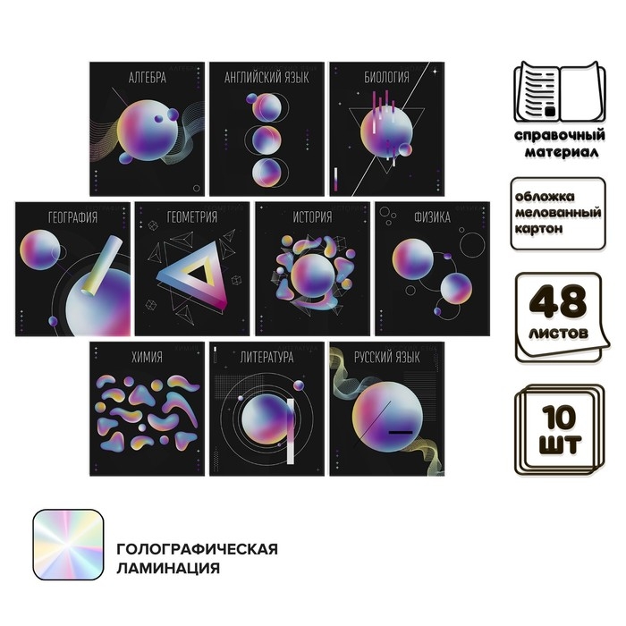 Комплект предметных тетрадей Calligrata TOP "Абстракция", 48 листов, 10 предметов, со справочным материалом, обложка мелованный картнон, голографическая ламинация, блок офсет