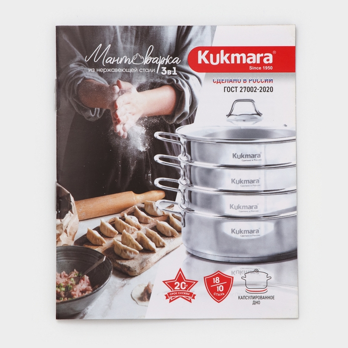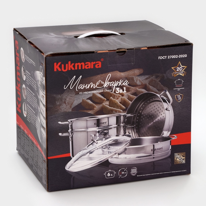 Мантоварка 3в1 с расширенными функциями и стильным внешним видом, каждая деталь которой рассчитана и продумана, гармонично дополняет серию посуды Kukmara из нержавеющей стали . Зеркальный блеск стали в сочетании с брендом ярко подчёркивает высокое качество продукции.