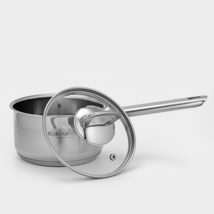 Ковш ORION, 1 л, d=14 см, стеклянная крышка, капусльное дно, индукция