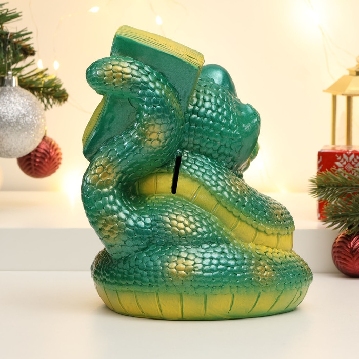 Копилка "Змея с пачкой денег" зеленая, 20см