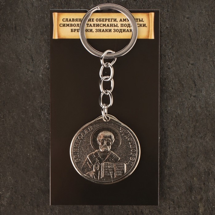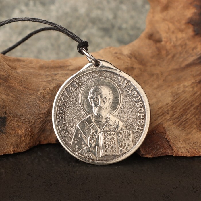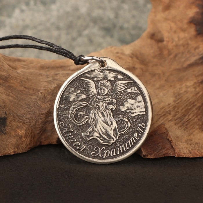Икона-подвеска Св.Николай Чудотворец и Ангел хранитель, 12г, 33х30 мм, юв. мельхиор