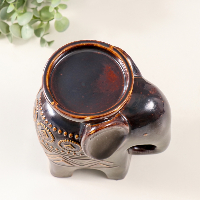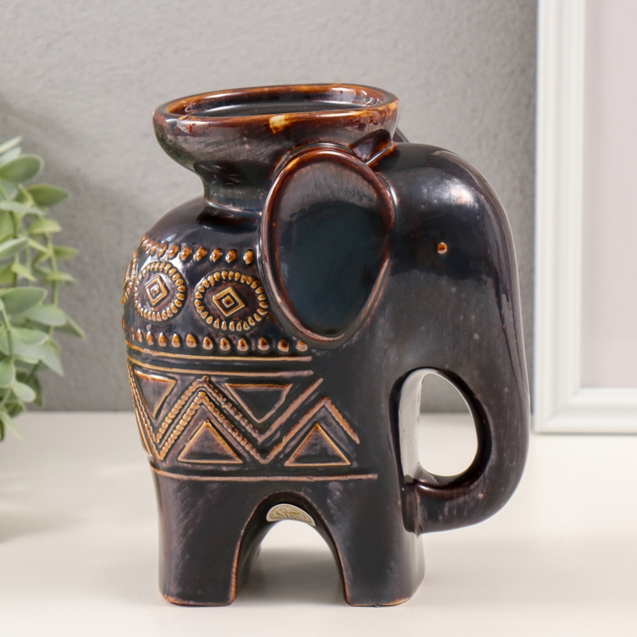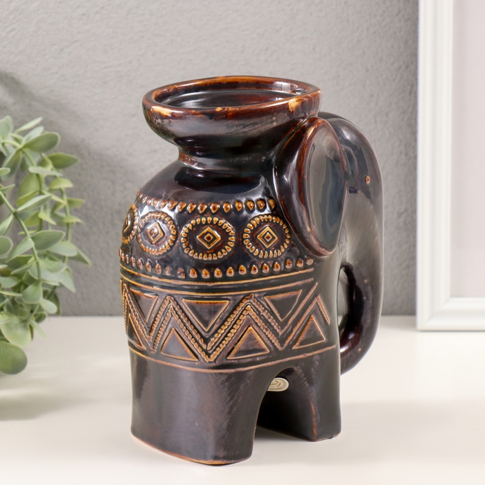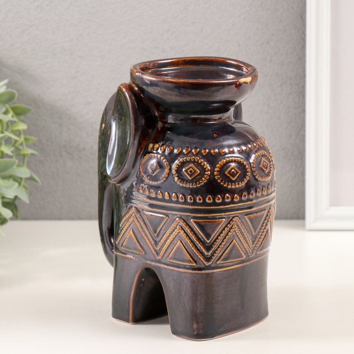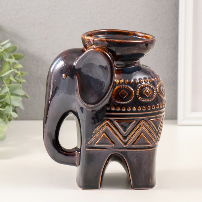 Подсвечник керамика на 1 свечу "Слонёнок. Этнические узоры" коричневый 10х14,5х18 см