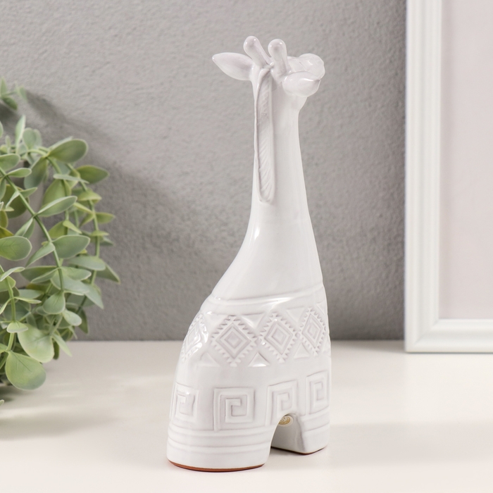 Сувенир керамика "Жираф. Этнические узоры" белый состаренный 8х5х18,5 см
