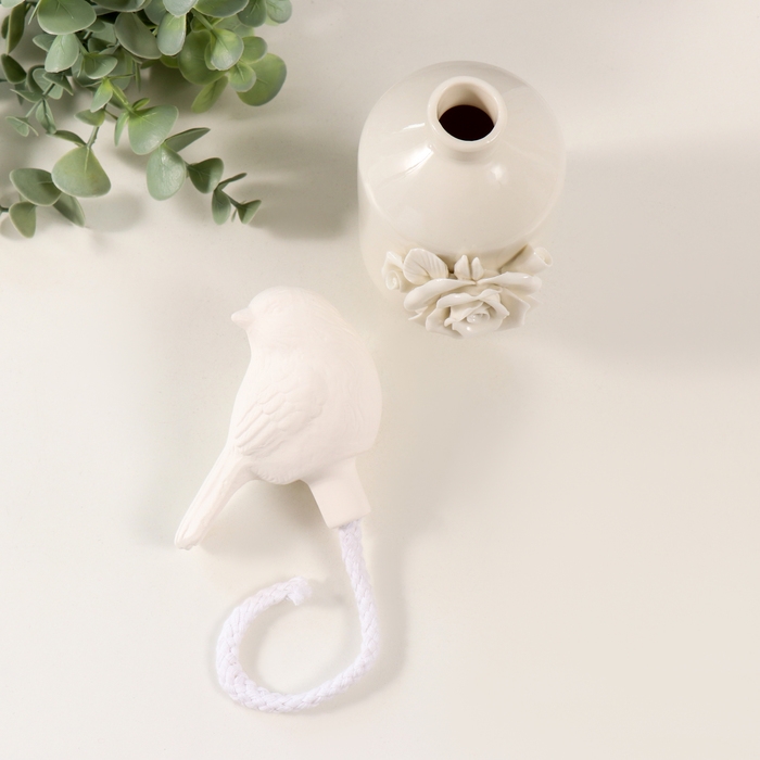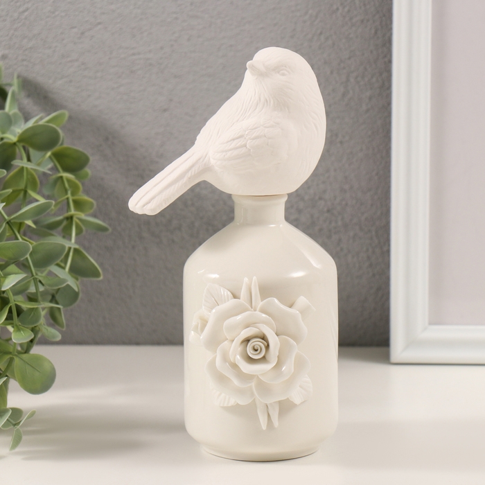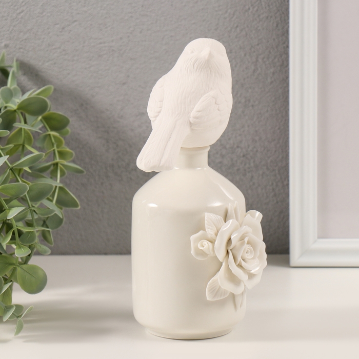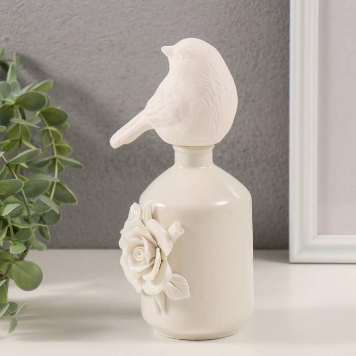 Аромадиффузор керамика "Белый воробышек на вазе с розой" 6,7х9,5х18,,8 см