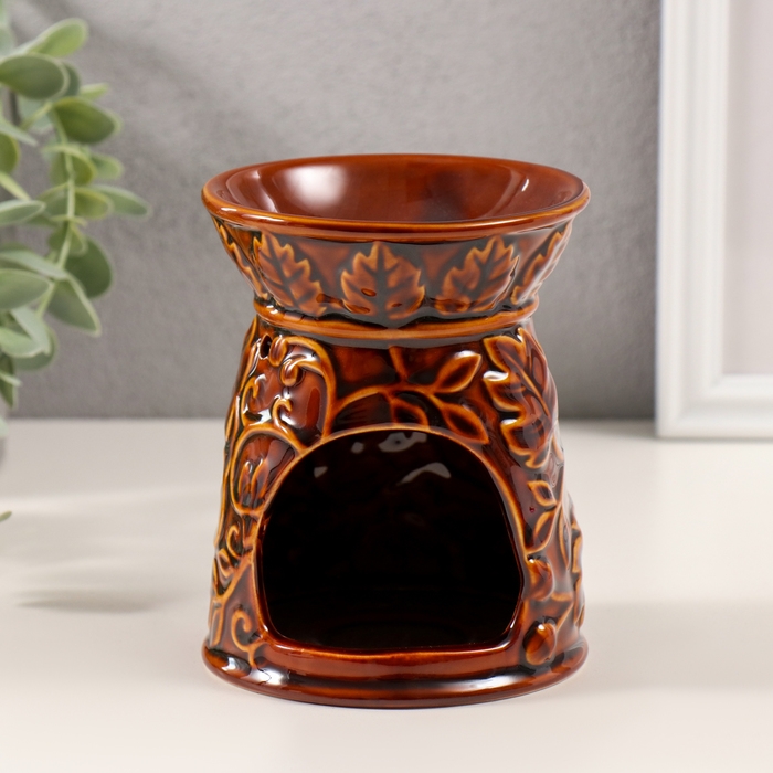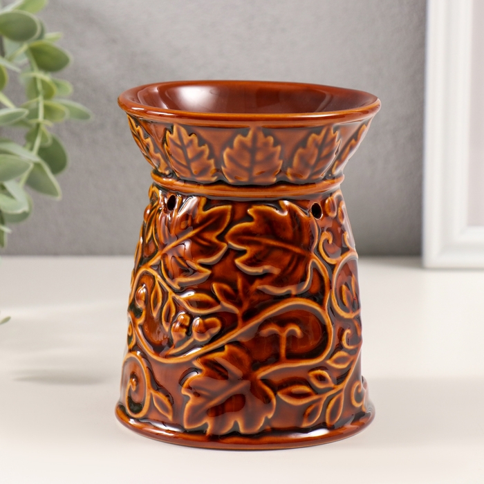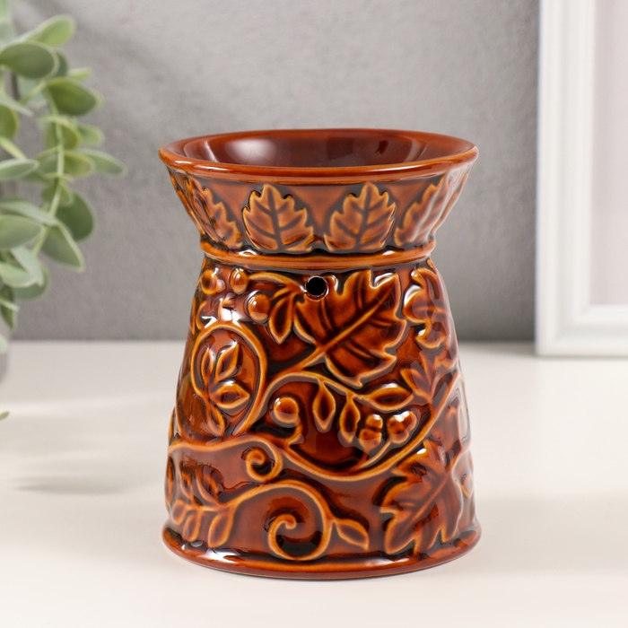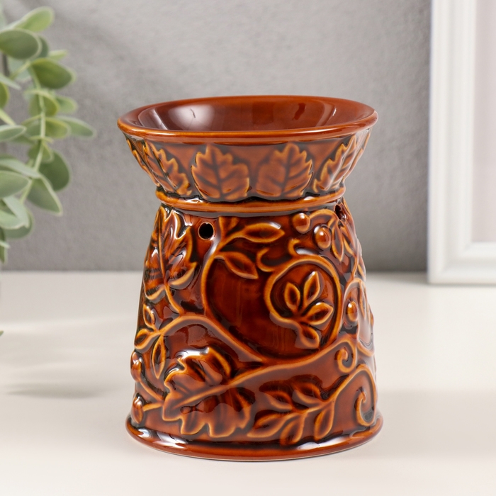 Аромалампа керамика "Растительный узор" карамель 9,5х9,5х12 см