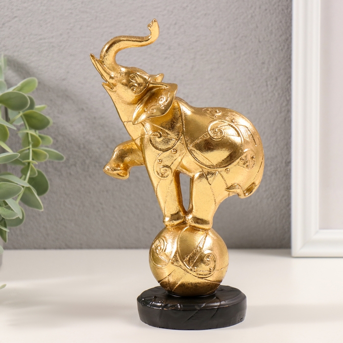 Сувенир полистоун "Слон на шаре с узорами" золото 10х5,5х18,5 см