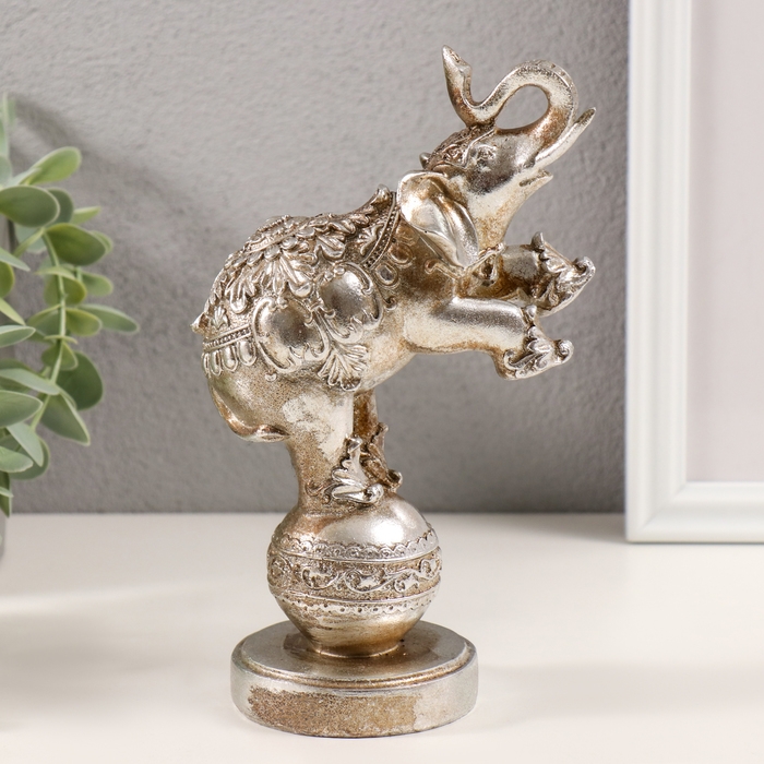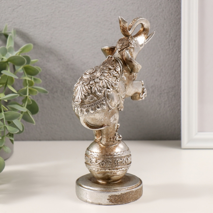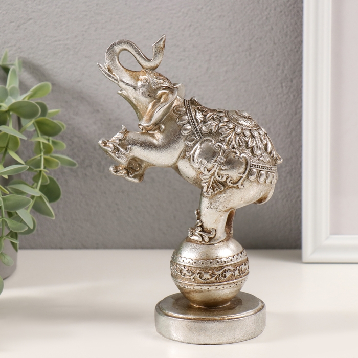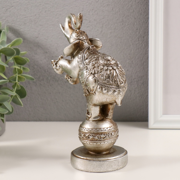 Сувенир полистоун "Слон цирковой на шаре с узорами" серебро 11,5х7х18,5 см