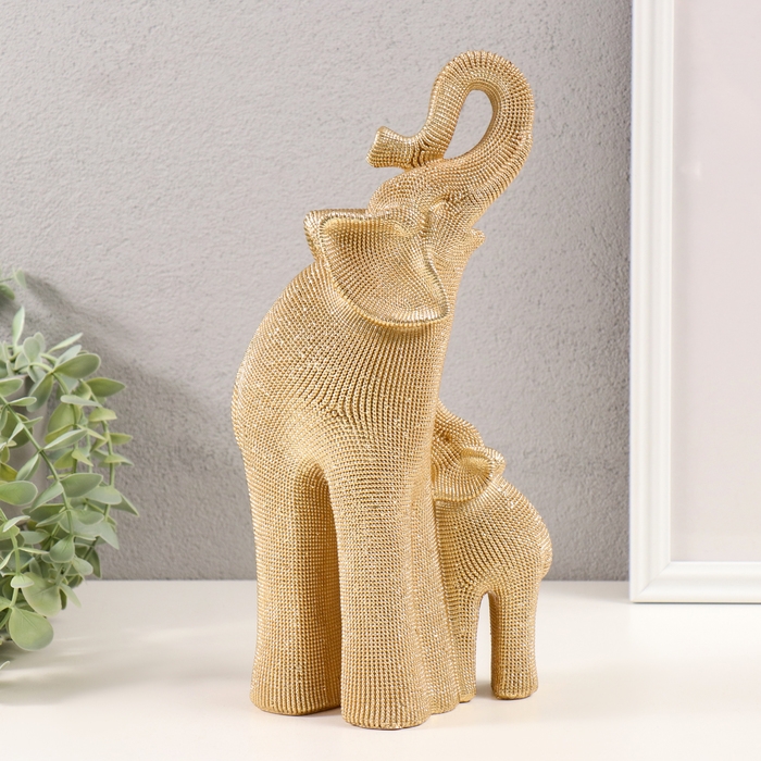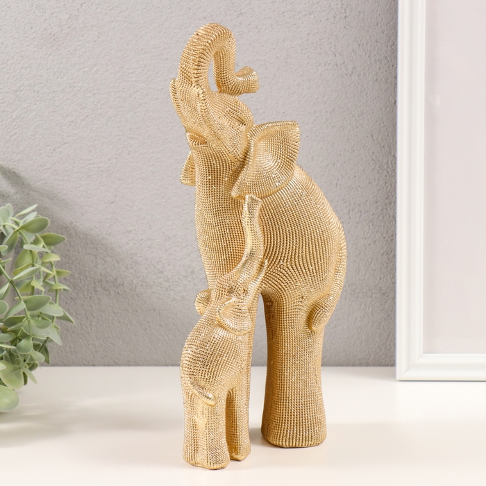 Сувенир полистоун 3D "Слон со слонёнком" тёмное золото 13,5х8х28,5 см