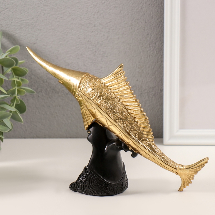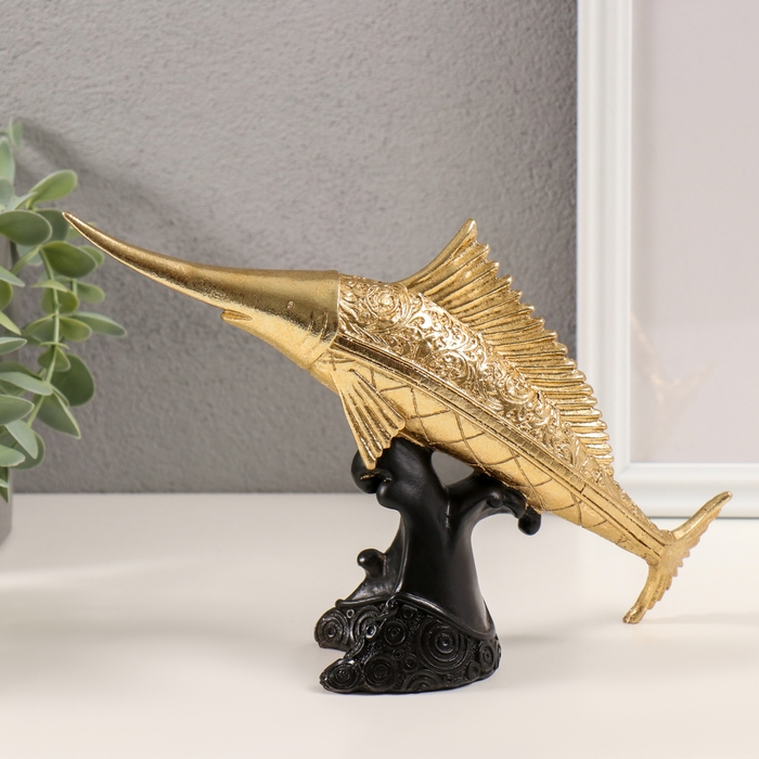 Сувенир полистоун "Меч-рыба золотая с узорами" 23х7х16 см