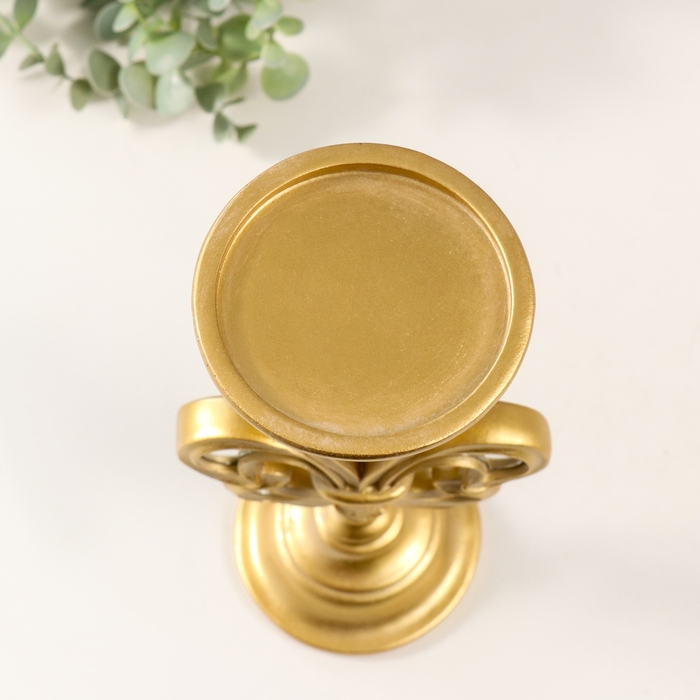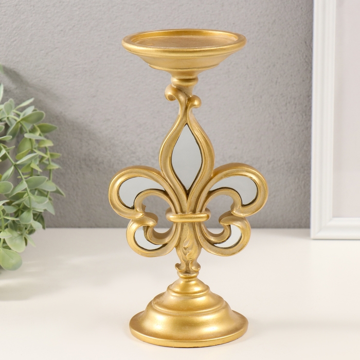 Подсвечник полистоун, зеркало на 1 свечу "Геральдическая лилия" золото 9х9х23 см