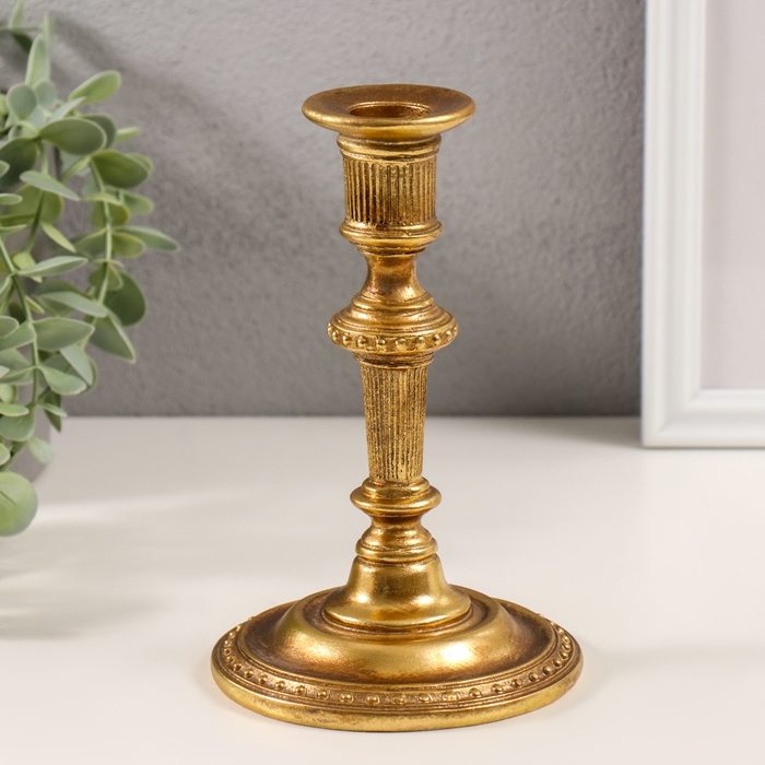 Подсвечник полистоун на 1 свечу "Траяна" золото 10,5х10,5х16,5 см