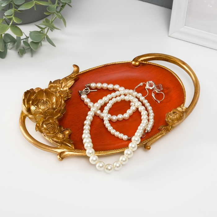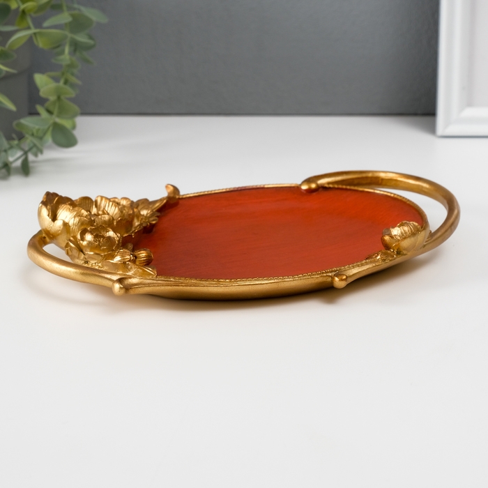 Подставка интерьерная полистоун "Королевские золотые пионы" под красное дерево 23х16,5х3 см 102039