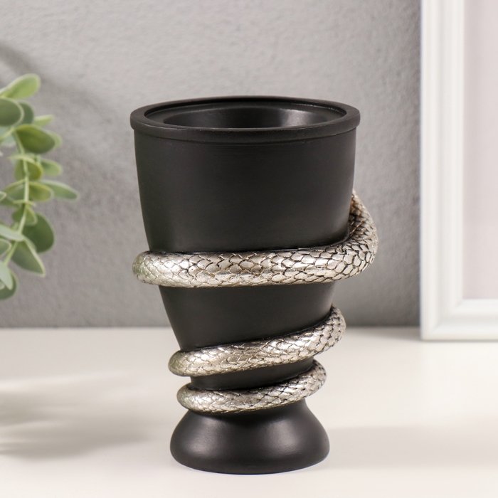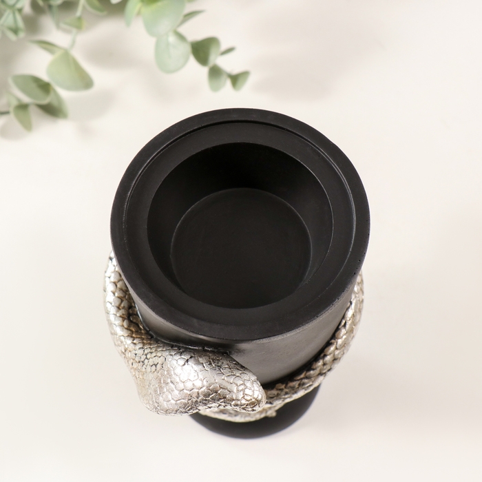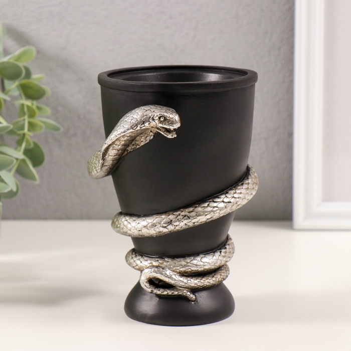 Подсвечник полистоун на 1 свечу "Змея и кубок" серебро 11,5х10х14,3 см