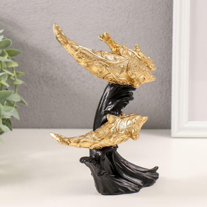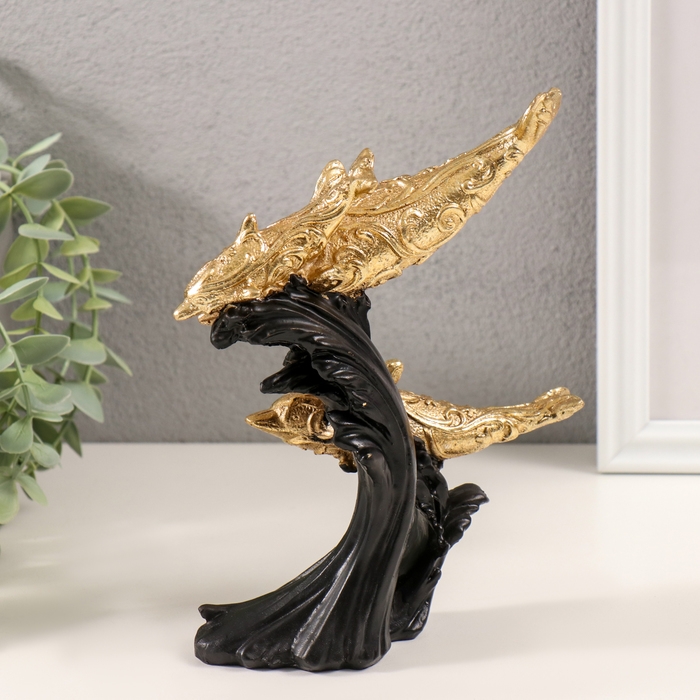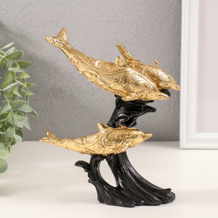 Сувенир полистоун "Три дельфина на волне, с узорами" золото 14х7х17,5 см