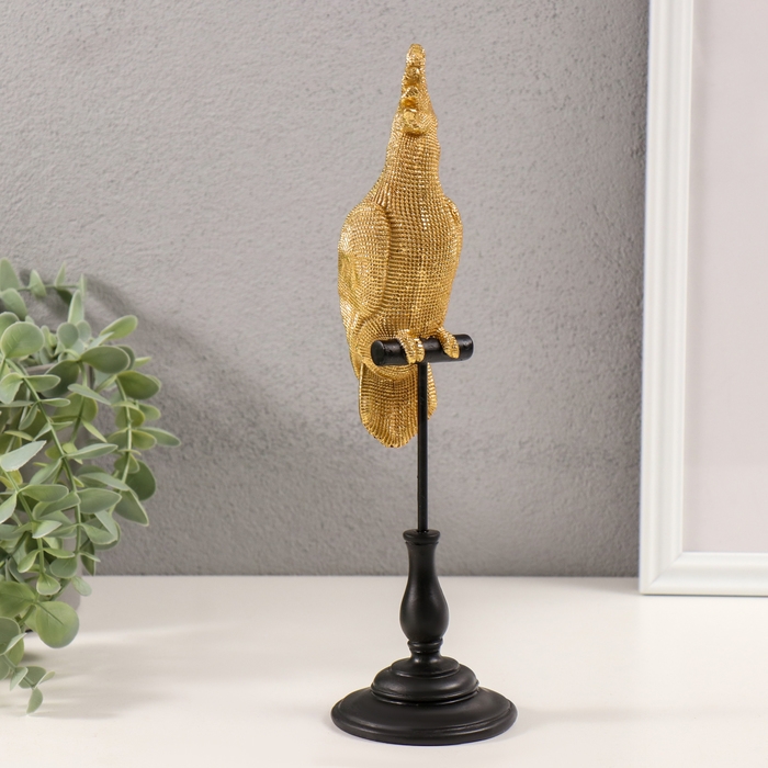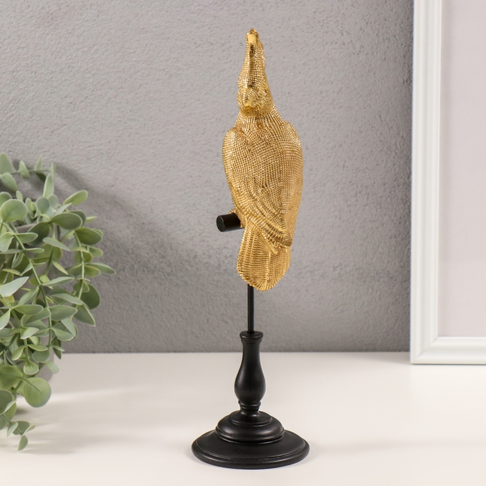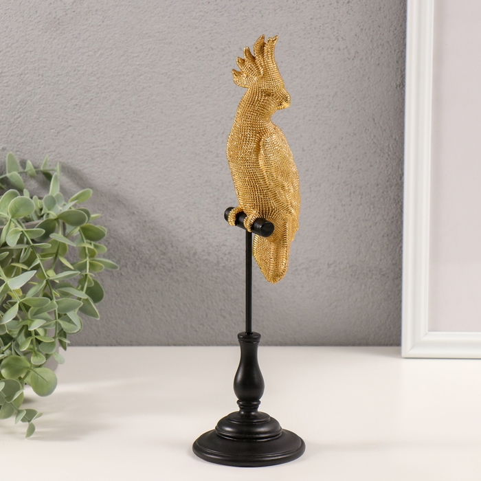 Сувенир полистоун 3D "Какаду на жёрдочке" золото 7,5х7,5х28 см