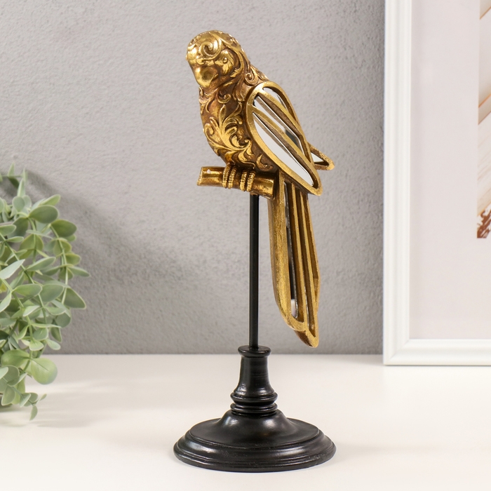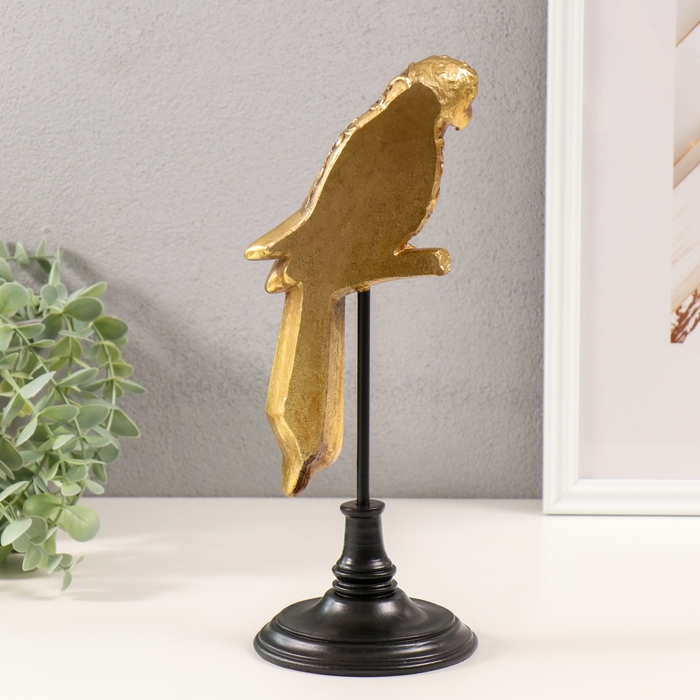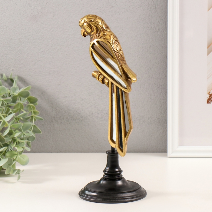 Сувенир полистоун, зеркало "Попугай Ара на жёрдочке" золото 10,5х10,5х30,5 см