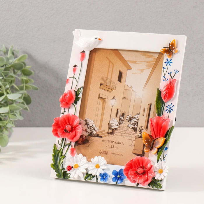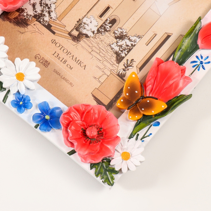 Фоторамка полистоун 13х18 см "Ромашки, тюльпаны и маки" цветная 18х2х21,5 см