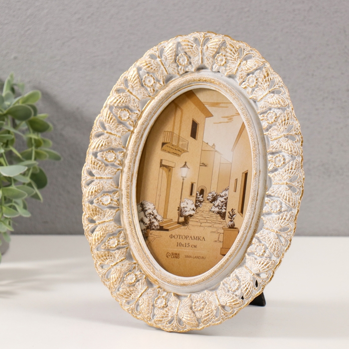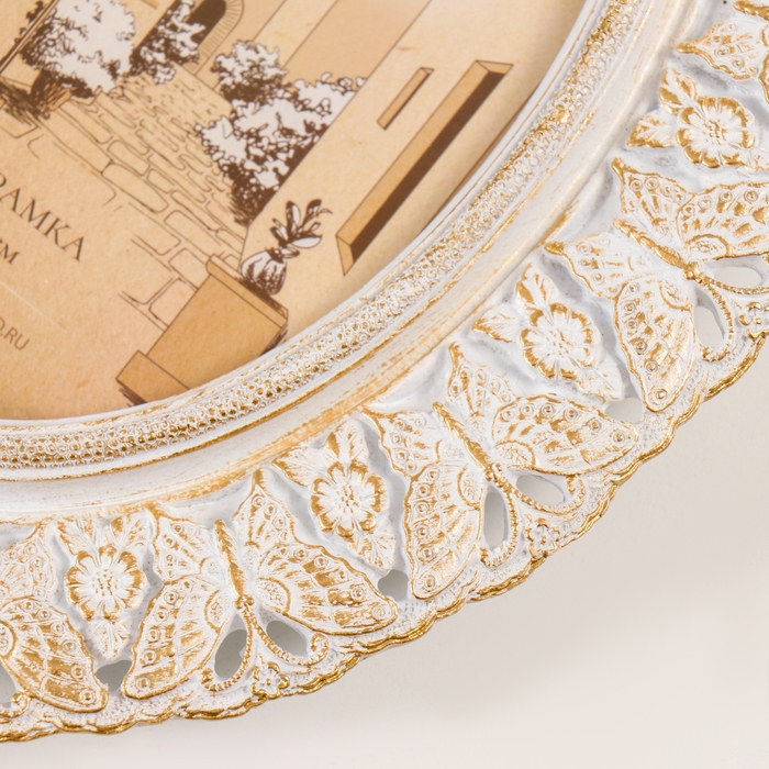 Фоторамка полистоун 10х15 см "Бабочки и нарциссы" белая с золотой патиной 18х2х22 см
