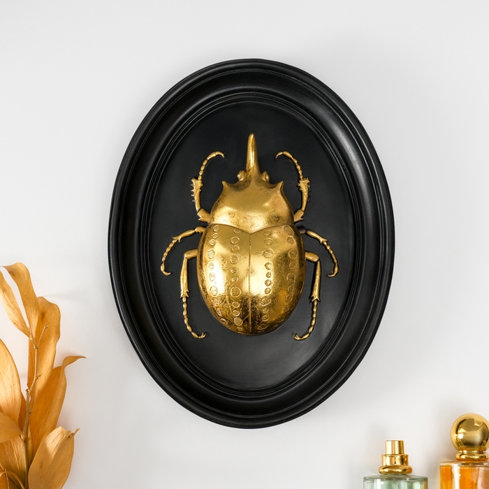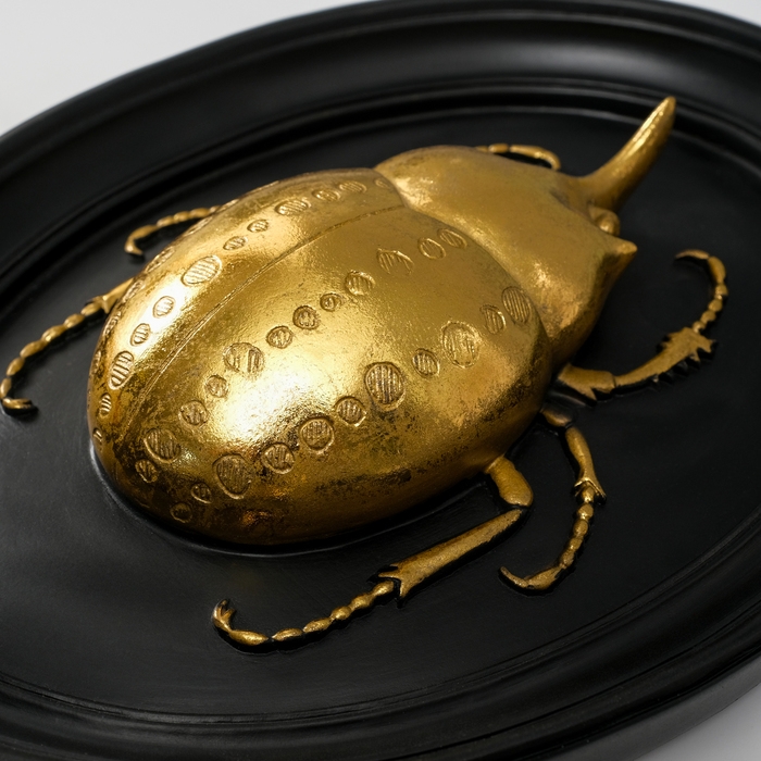 Панно интерьерное полистоун "Жук носорог" чёрный с золотом 21х5х27 см