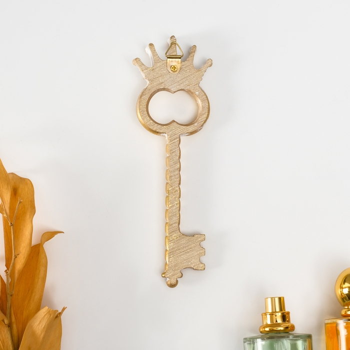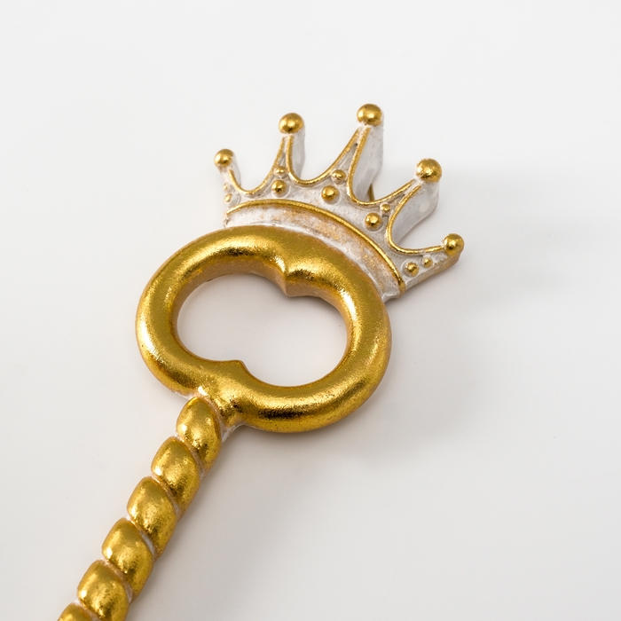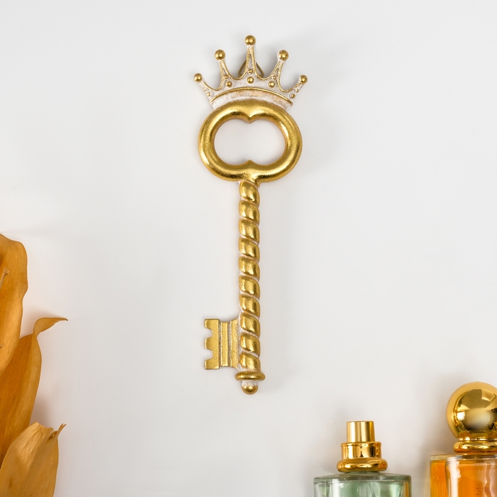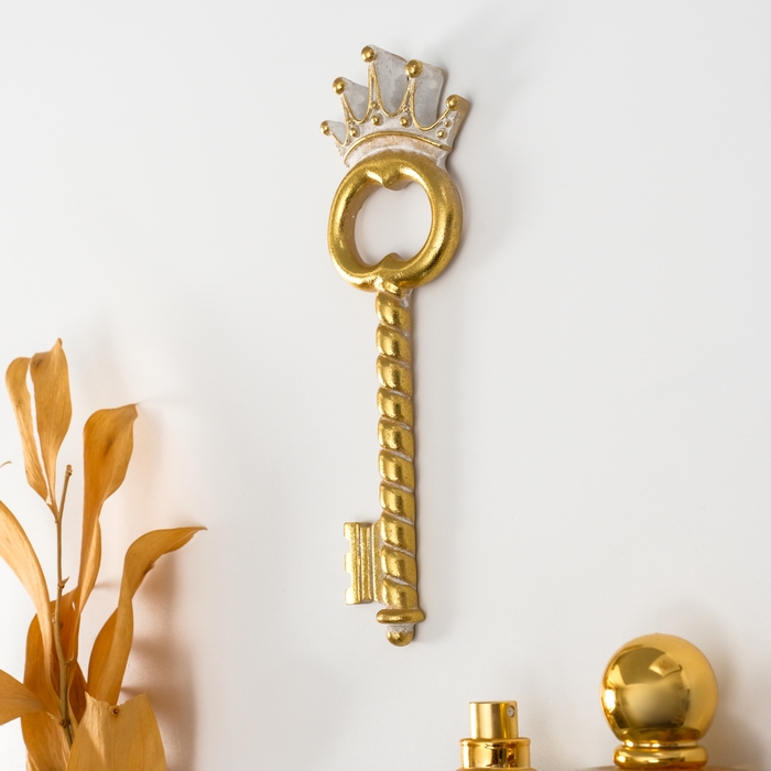 Панно интерьерное полистоун "Витой ключ с короной" золото с белой патиной 5,5х1х17 см
