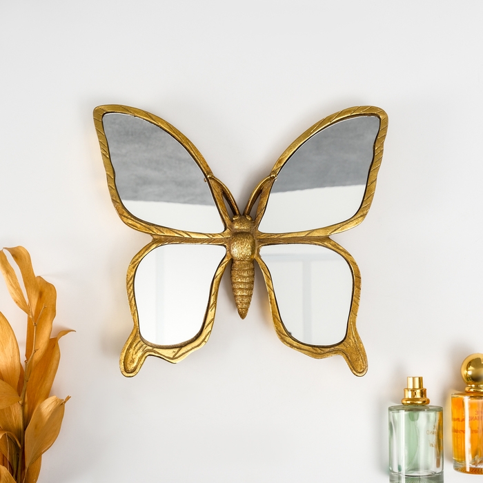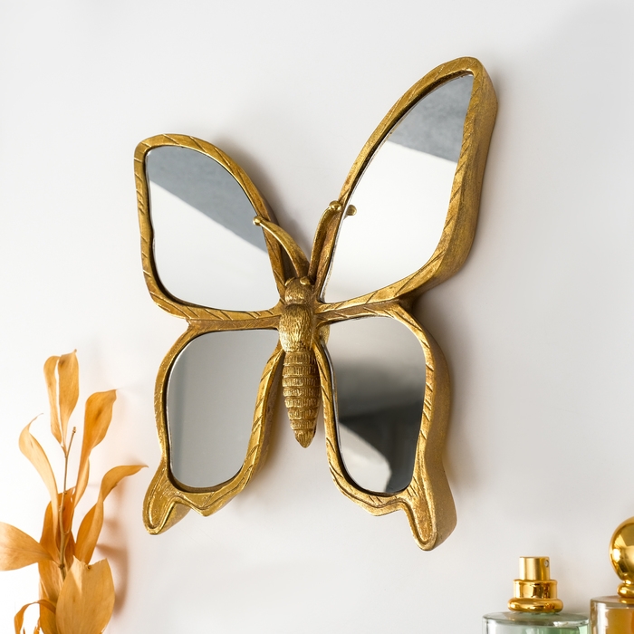 Панно интерьерное полистоун "Зеркальная бабочка" золото 25х3х23 см