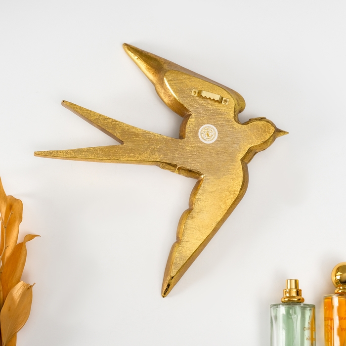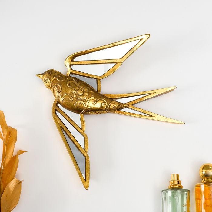 Панно интерьерное полистоун "Зеркальная ласточка с узорами" золото 28х4,5х27 см