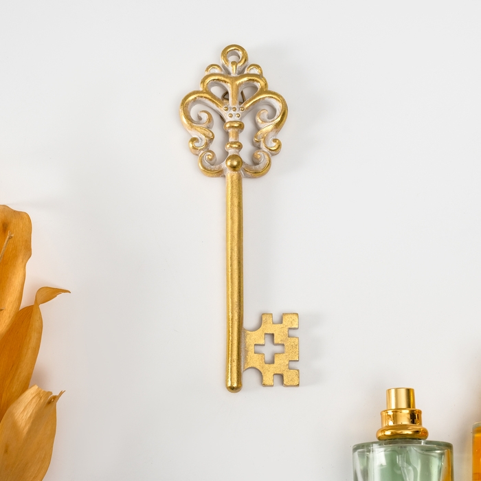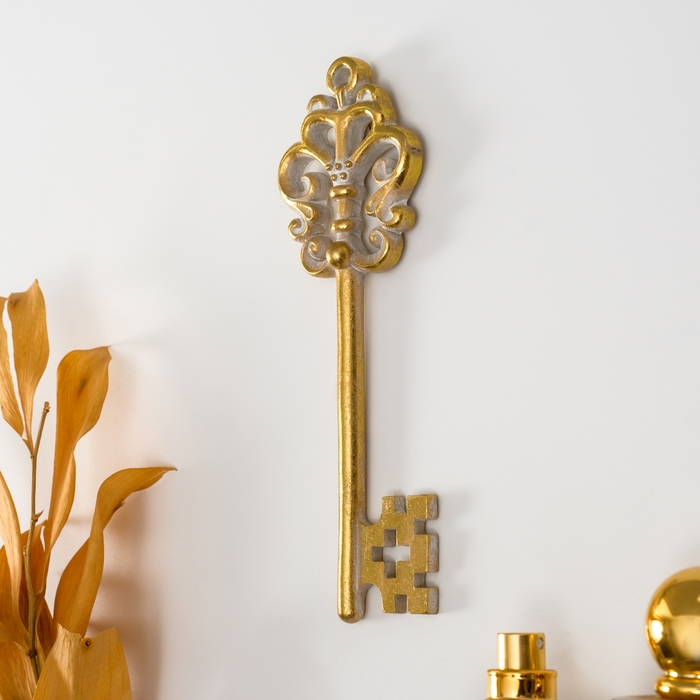 Панно интерьерное полистоун "Ажурный ключ" золото с белой патиной 6,5х1х17 см