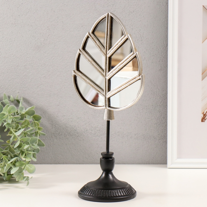 Сувенир полистоун "Зеркальный лист" серебро 15,5х11х35 см