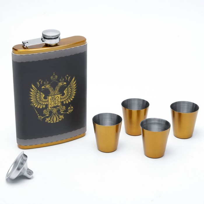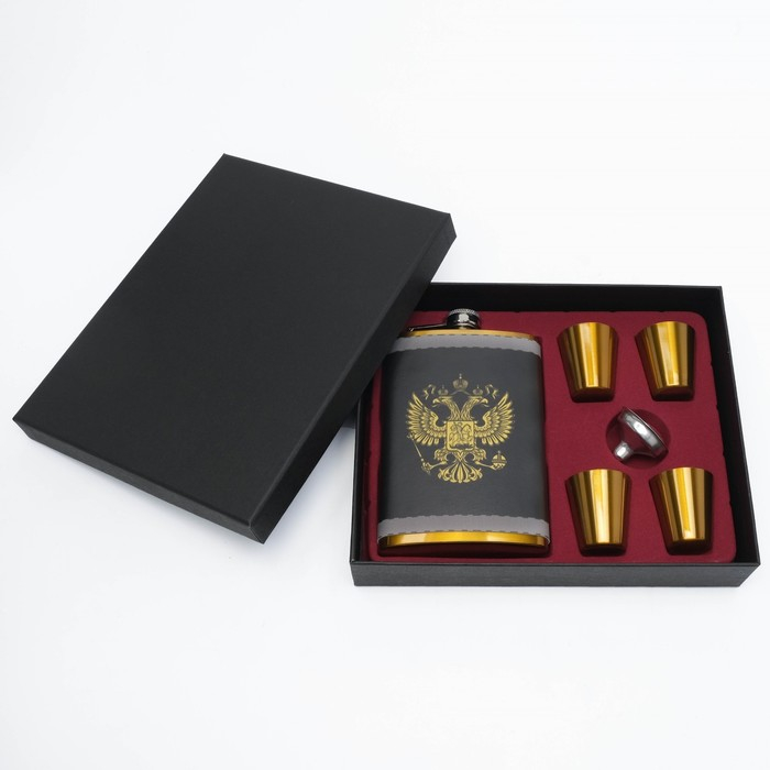 Подарочный набор 6 в 1 "Герб России": фляжка 270 мл, 4 рюмки, воронка, 24 х 17 см