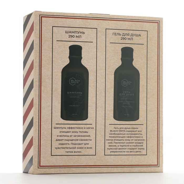 Подарочный набор косметики BLACK ONYX, гель для душа и шампунь для волос, 2 х 290 мл, аромат перца и агарового дерева, HARD LINE