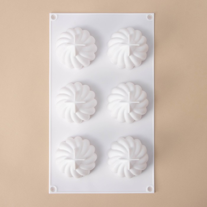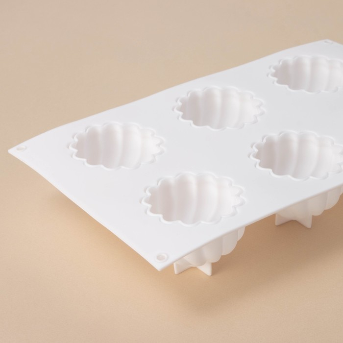 Форма для муссовых десертов и выпечки Доляна «Взбитые сливки», 29×17×5 см, 6 ячеек (d=6,5 см), цвет белый