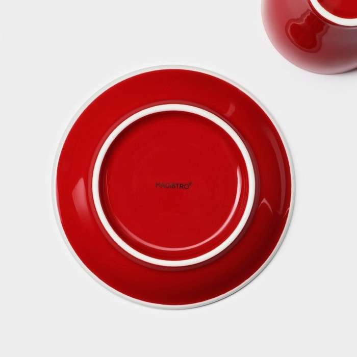 Кофейная пара фарфоровая Magistro Coffee time, 2 предмета: чашка 180 мл, блюдце d=14,5 см, цвет красный