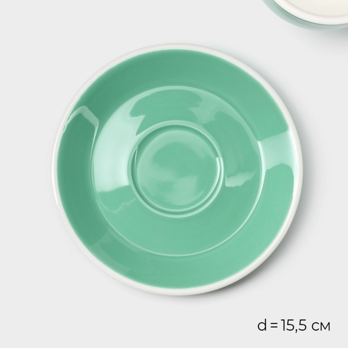 Кофейная пара фарфоровая Magistro Coffee time, 2 предмета: чашка 280 мл, блюдце d=15,5 см, цвет бирюзовый