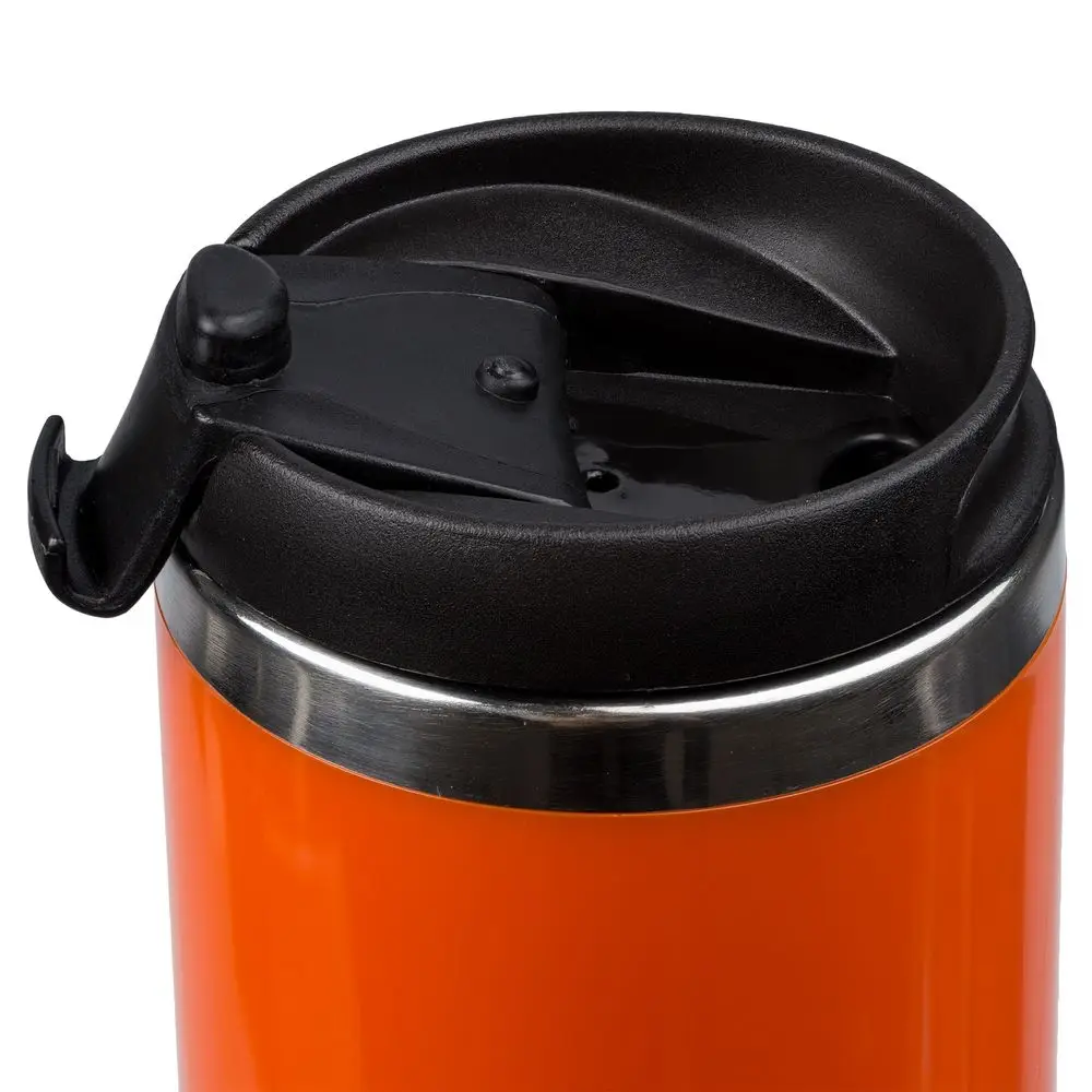 Двухслойная конструкция из пластика снаружи и пищевой нержавеющей стали внутри. Герметичная завинчивающаяся крышка с откидным клапаном для питья.