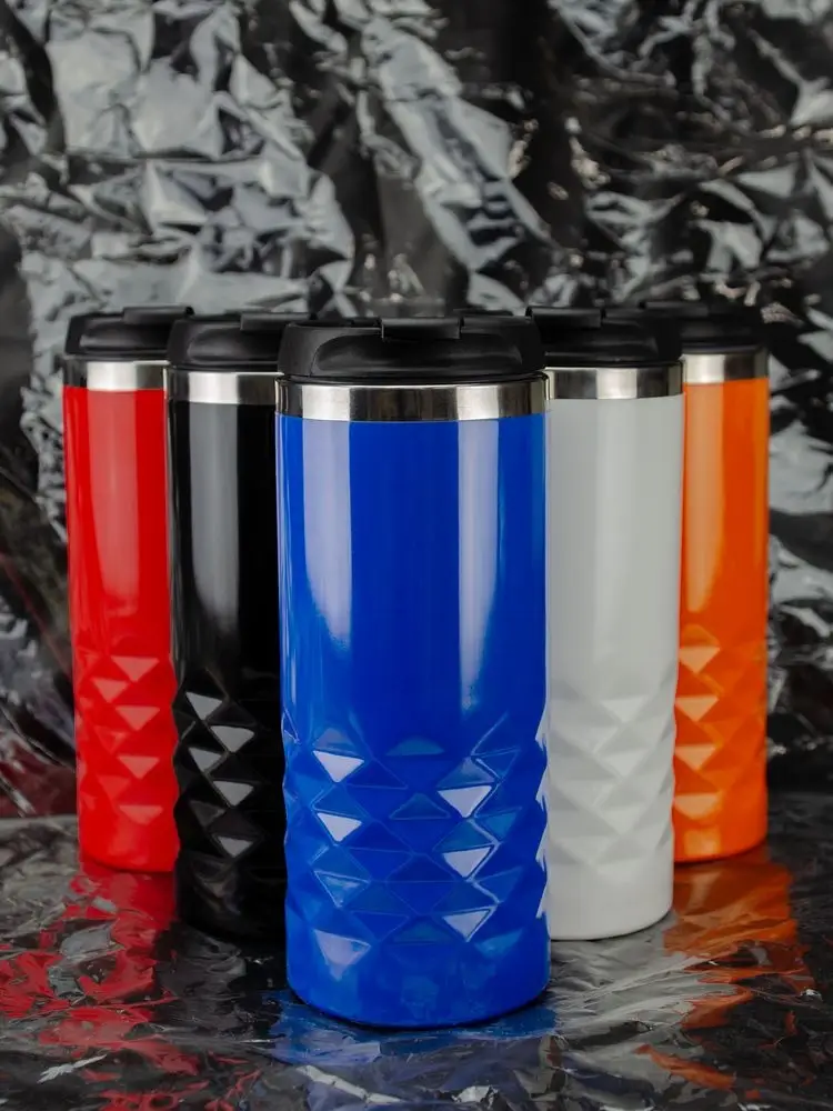 Покрытие кружки Prism напоминает глянцевую эмаль, — и рельефная поверхность корпуса дополнительно подчеркивается яркими бликами.