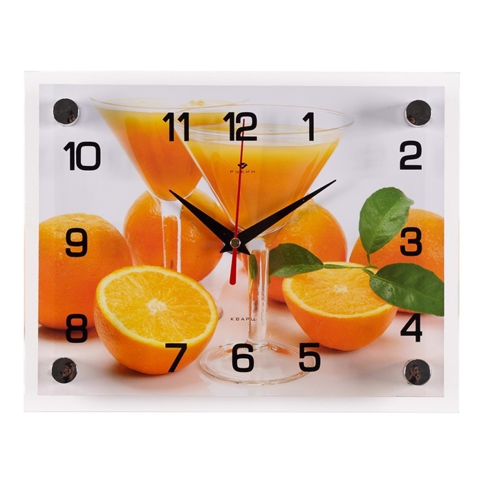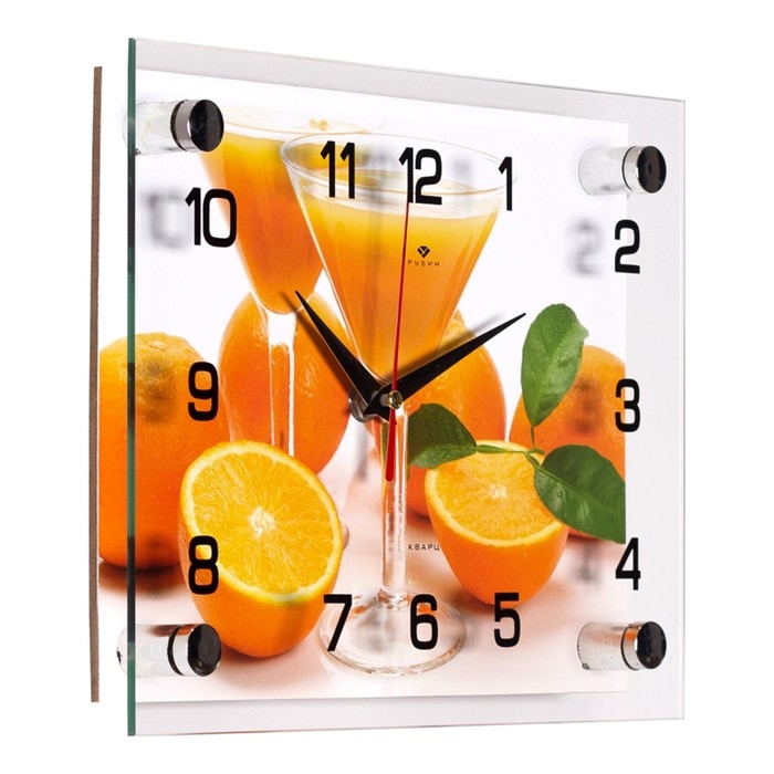 Часы настенные, для кухни "Апельсиновый сок", бесшумные, 20 х 25 см