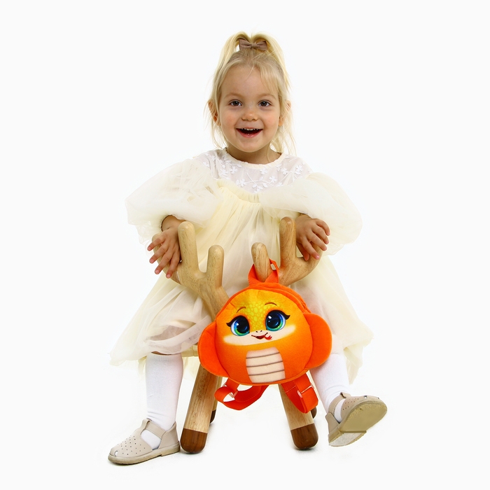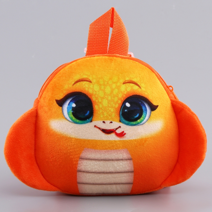 Новый год! Рюкзак детский новогодний «Смешная змейка», плюшевый, цвет оранжевый