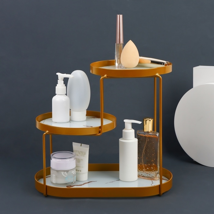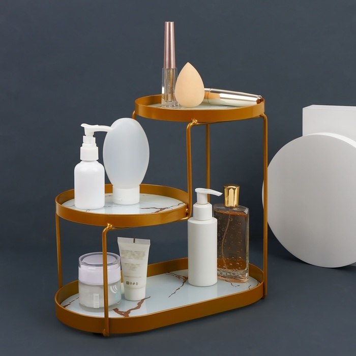Стильный и эстетичный органайзер. Такая покупка станет отличным решением для организации и хранения флаконов, баночек, духов и кремов в любом пространстве. Компактные размеры, благодаря трём уровням/секциям - Вы сможете разместить этот органайзер в любом месте.