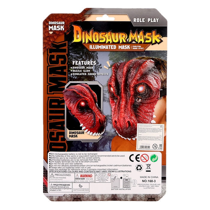 Маска динозавра «Юрский период», световые и звуковые эффекты, цвет МИКС