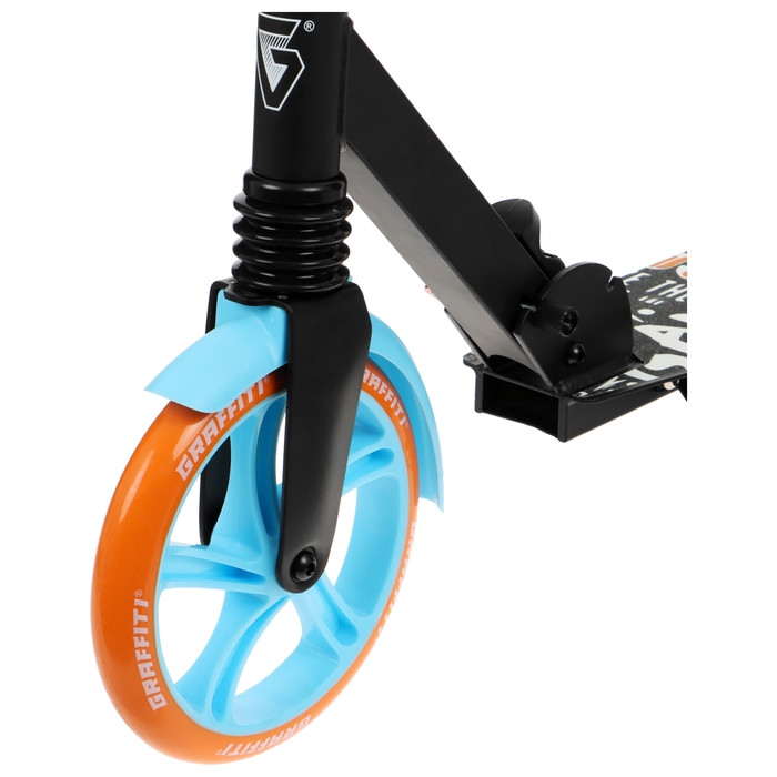 Самокат городской GRAFFITI Lux 200, колёса PU 200 мм, амортизатор передний, ABEC 11 Carbon, цвет чёрный