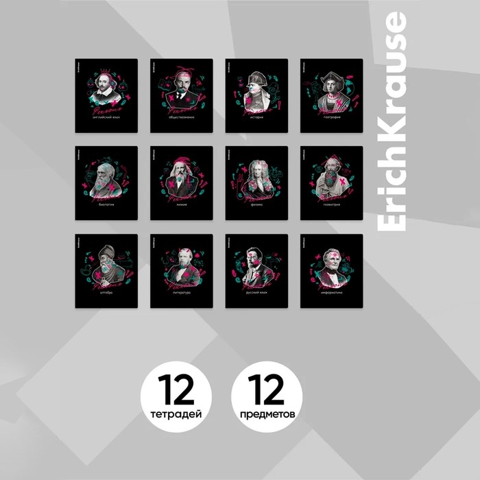 Комплект предметных тетрадей 48 листов, 12 штук, ErichKrause Persons, пластиковая обложка, мелованный картон, блок офсет 100% белизна, инфо-блок