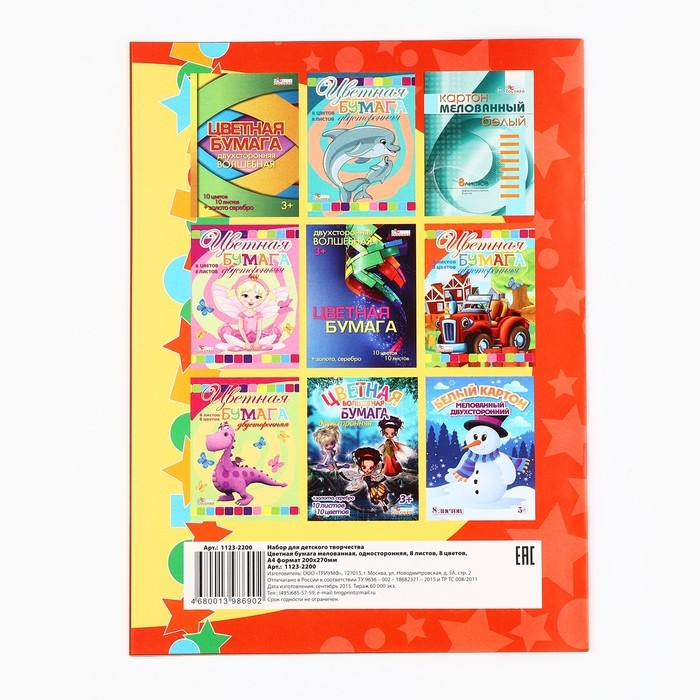 - Бумага цветная, 8 листов, 8 цветов - 1 шт.;