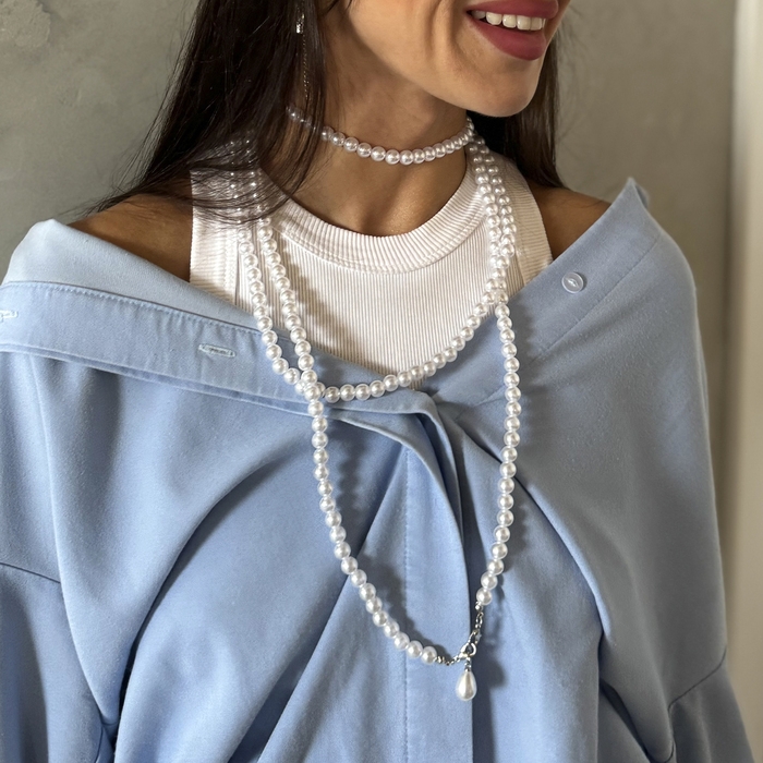 Портупея «Талия» жемчужины, цвет белый в серебре, 68 см + 25 см удлинитель