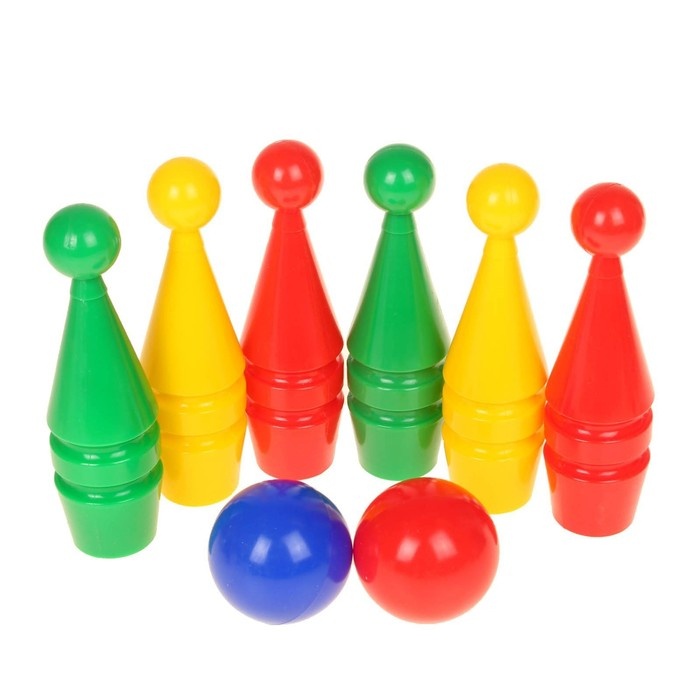 Боулинг цветной: 6 кеглей, 2 шара, в сетке