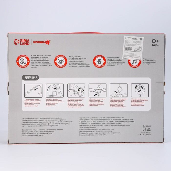 Мобиль музыкальный на кроватку «Пряничный Домик №2», заводной, цвет МИКС, Крошка Я