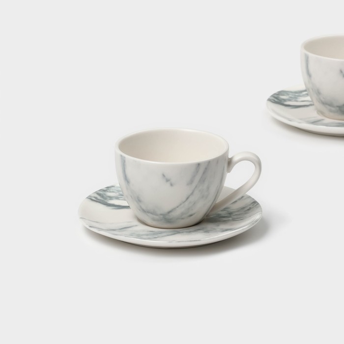 Набор чайный фарфоровый Magistro Real Marble, 4 предмета: 2 чашки 150 мл, 2 блюдца d=12,5 см
